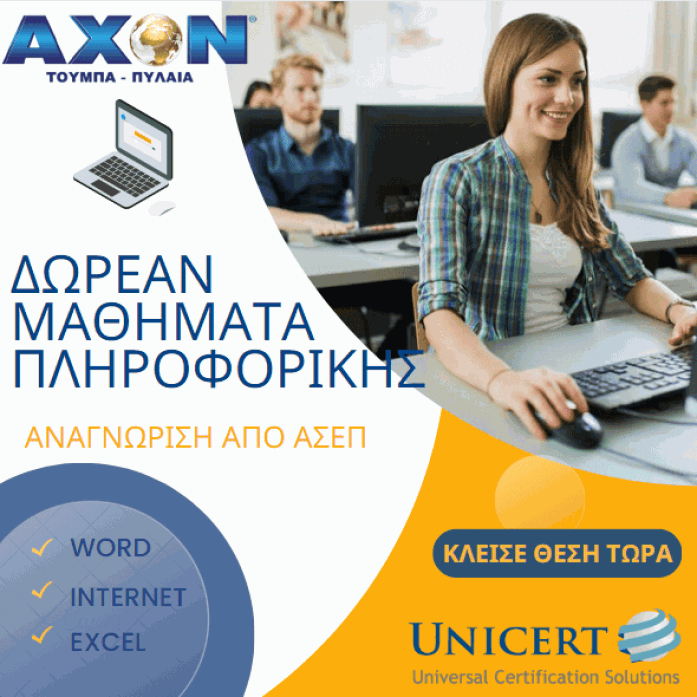ΔΩΡΕΑΝ μαθήματα εκμάθησης βασικών δεξιοτήτων πληροφορικής (Office) για την απόκτηση αναγνωρισμένων πιστοποιητικών από εξεταστικό φορέα του Ε.Ο.Π.Π.Ε.Π. (Υπ. Παιδείας) για όλες τις προκηρύξεις εργασίας και ΑΣΕΠ.